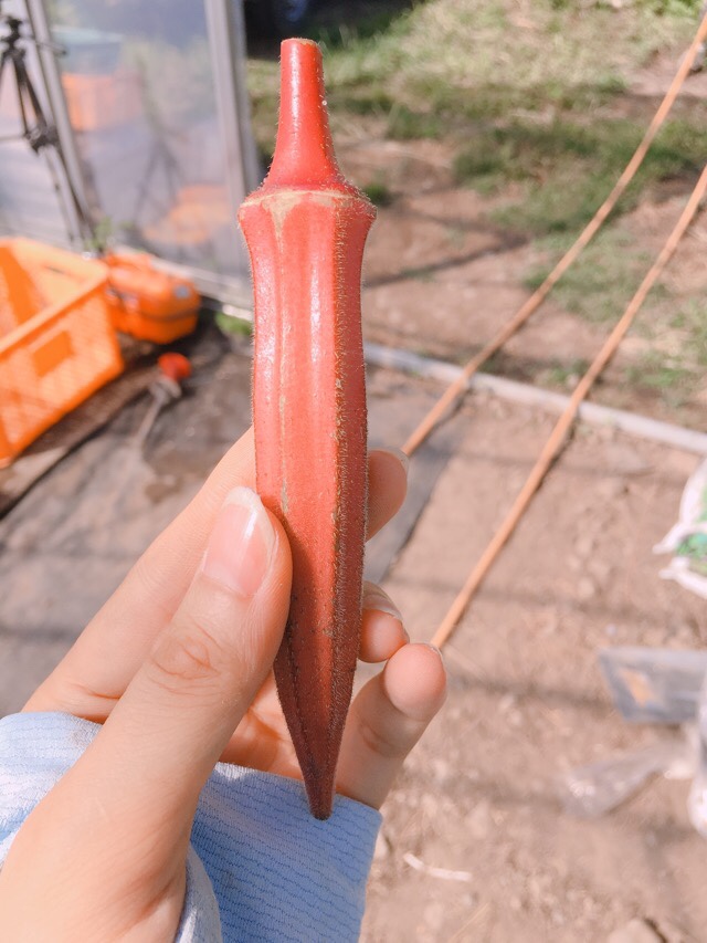 ちなみに、赤いオクラは茹でてしまうと赤い色が水に溶けてしまうため、茹でずにそのままサラダで食べる事をお勧めしております。そのままでも食べやすい頃合いのものを出荷しております。